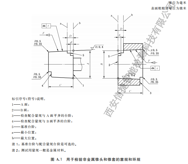 (1)标准附录A中图A.1 用于检验非金属锥头和锥套的塞规和环规图