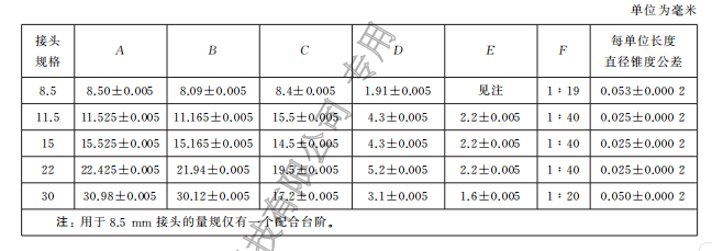 (2)表A.1 用于检验非金属锥头和锥套的塞规和环规尺寸