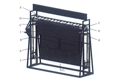 (6)一些光滑硬木圆柱位于滚轴的上方,规格:φ65mm*140mm,每个圆柱都由一对臂固定住,此臂与绕之转动的圆柱轴心之间的距离为 160mm。这些圆柱的位置应使每一个凸球都在一个圆柱的中心下面通过。当圆柱与滚轴的顶部接触时,这些臂的轴心线与水平成 25º角。每一个圆柱施加在滚轴上的力为 5.1N;