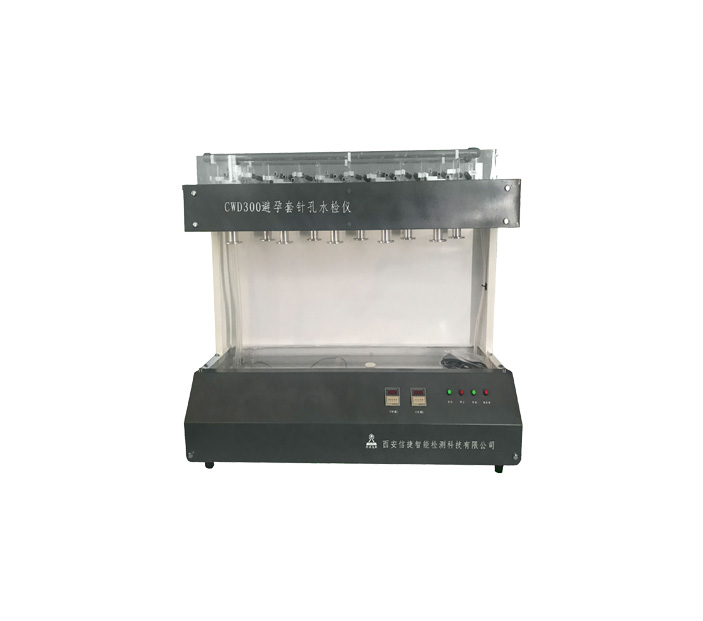 CWD300避孕套漏水试验仪依据标准GB/T 7544-2019《天然橡胶胶乳男用避孕套 技术要求与试验方法》/ISO 4074:2015 ,主要用于避孕套针孔试验的漏水法试验。设备原理:将规定体积的水充入避孕套,悬挂在仪器固定装置上,检查避孕套外表面漏水渗漏迹象。